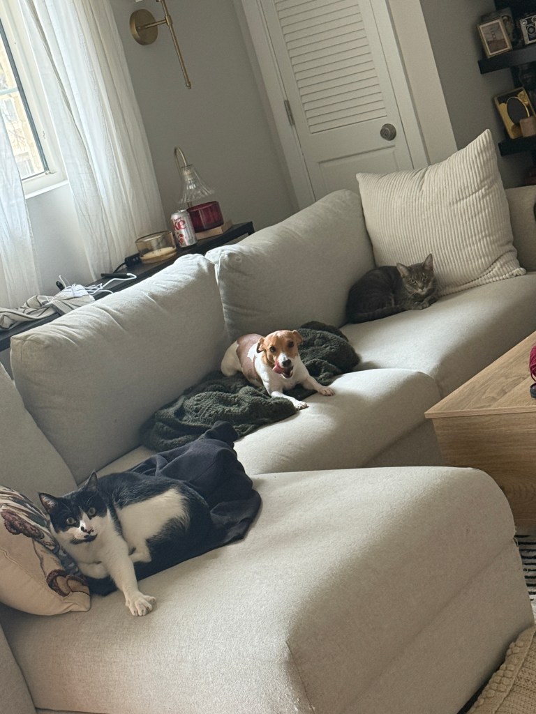 So, who is Megan? That’s me! I’m 28, living in Alexandria, Virginia with my boyfriend, Alex, our dog, a Jack Russel named Penny, and our two cats, Cleo and Chief (legal names: CleoPawtra and Meowster Chief). I have a full-time job working from home and I am a hobby hoarder: reading, baking, crafting, crocheting, knitting, sewing, Pilates, etc. Basically, if I’ve tried it, I’m now obsessed with it.